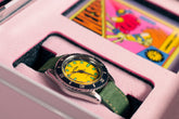 We upcycled some unused movements and cases into the iconic Lemon Lime Soda Diver Watch. This collection sold out within 60 seconds. We're working on a new batch!