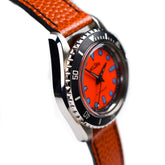 ᕯ Dial: 🍭 Dial in orange with hour baton markers in blue Super-LumiNova