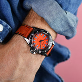 We upcycled some unused movements and cases into a best selling Orange Soda Diver Watch. This collection sold out within 60 seconds. We're working on a new batch!