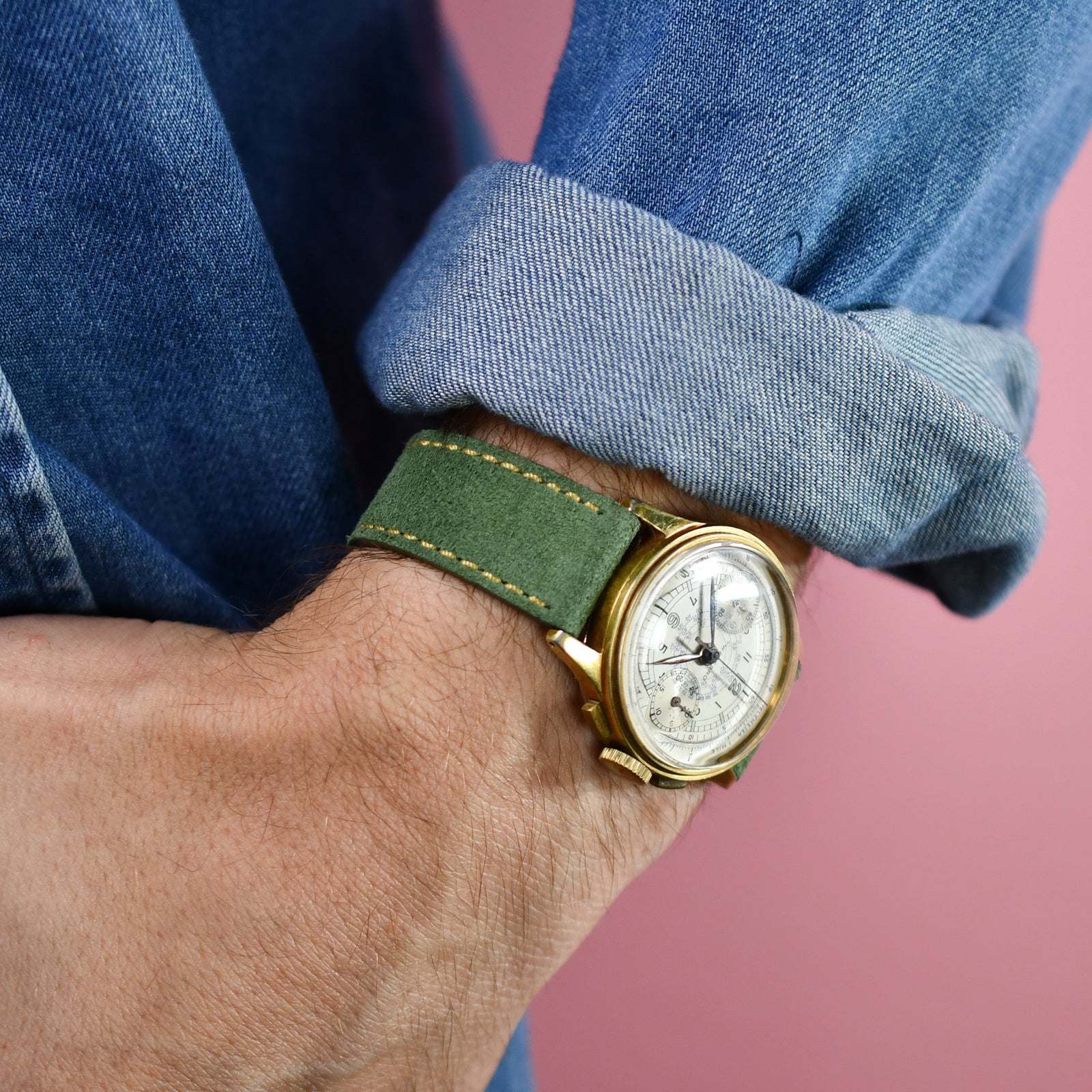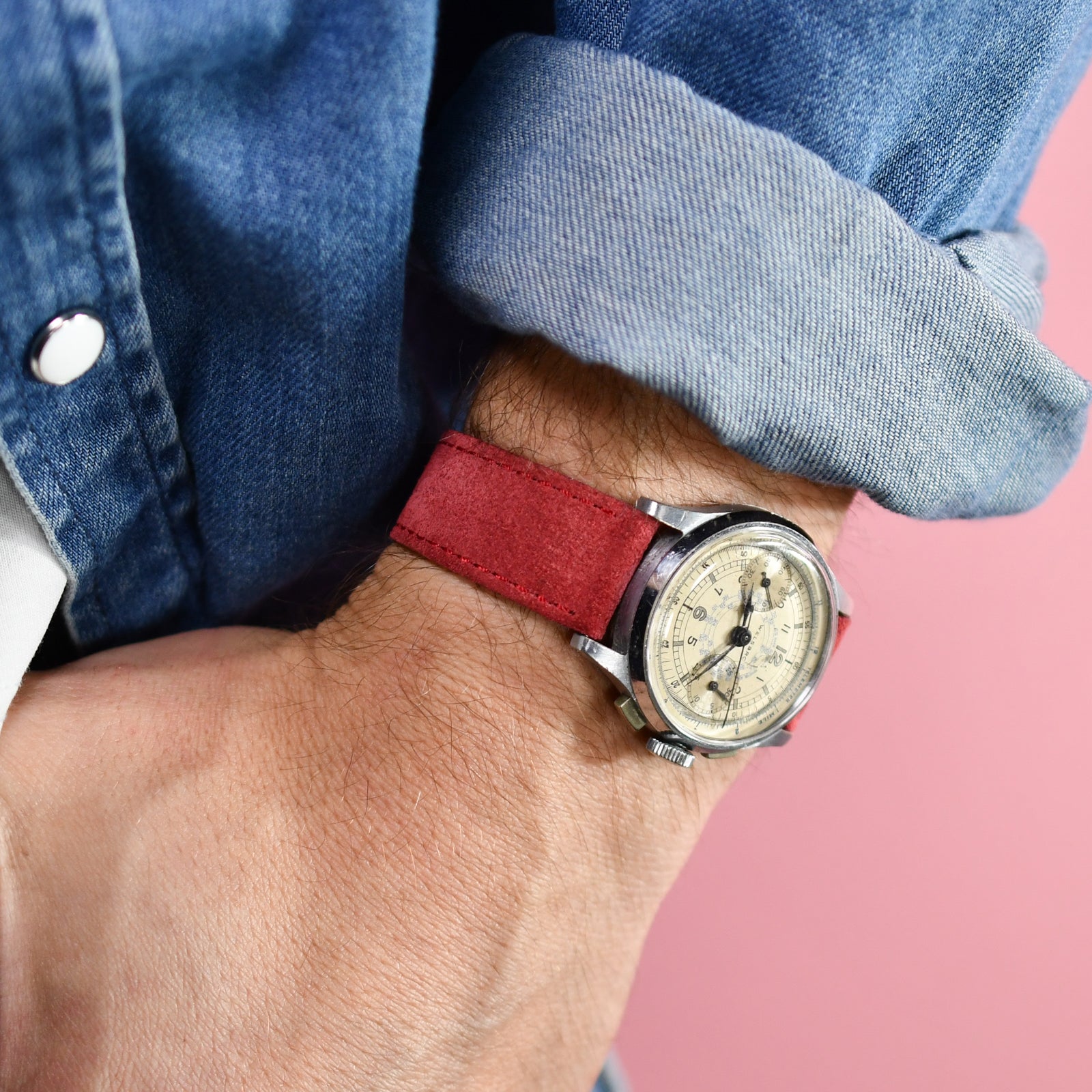 The Italian Suede Leather Watch Strap is velvety, yet durable. Lined with a breathable Nubuck leather, it wears extra gentle on the wrist. Perfect for softening the look of any watch. 100% handmade in Italy. Available in rich colors.