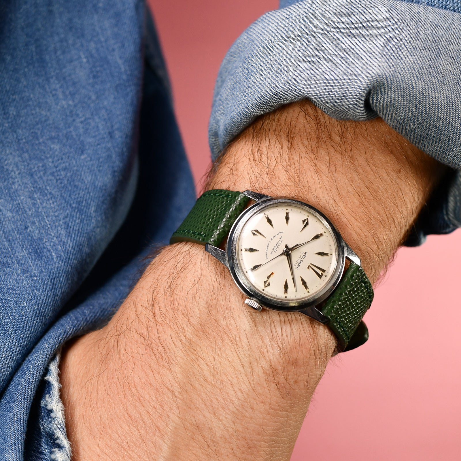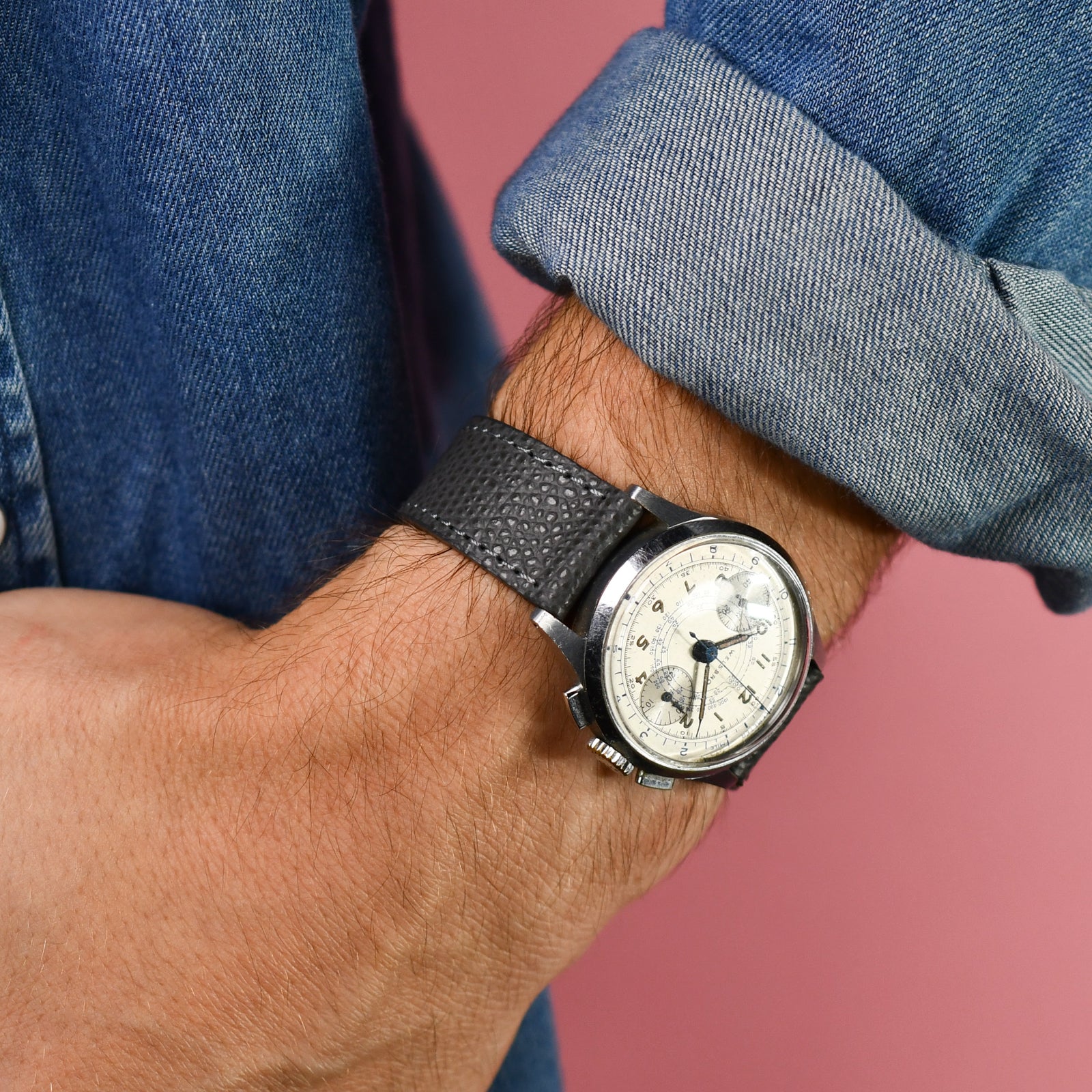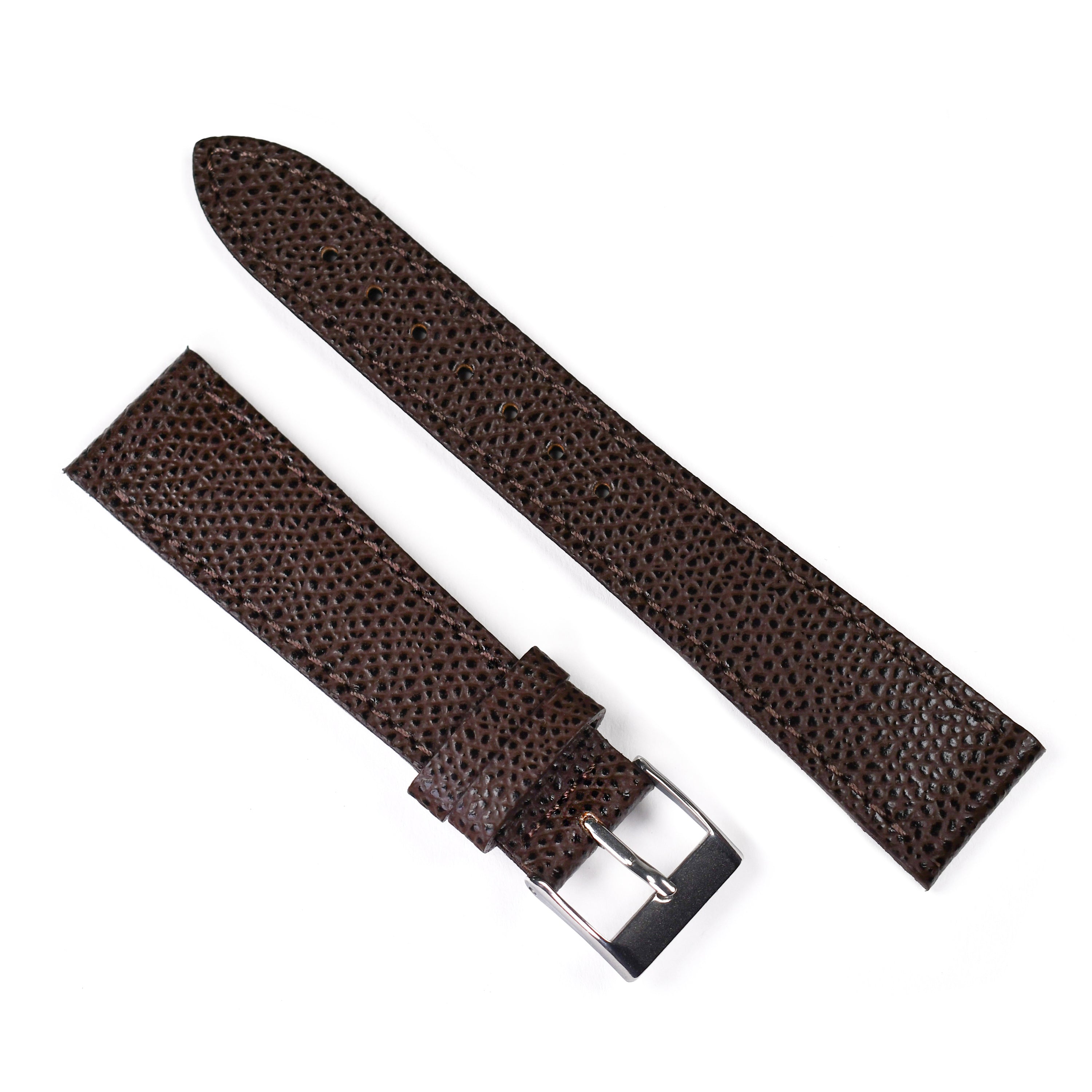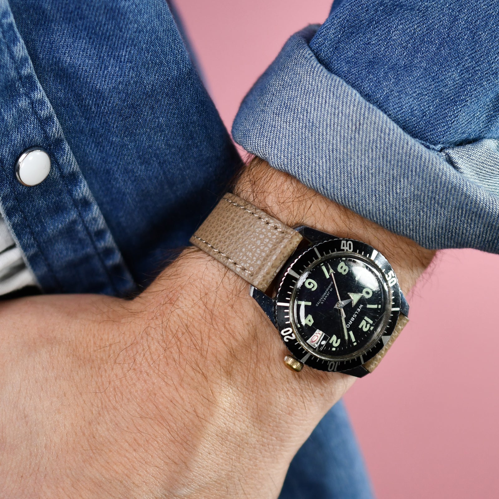 Our pebbled calfskin leather watch strap is water-resistant, durable, low-stretch and deeply rich in color. Lined with a breathable Nubuck leather, it wears comfy on the wrist. 100% handmade in Italy. Offered in gorgeous earth tones.