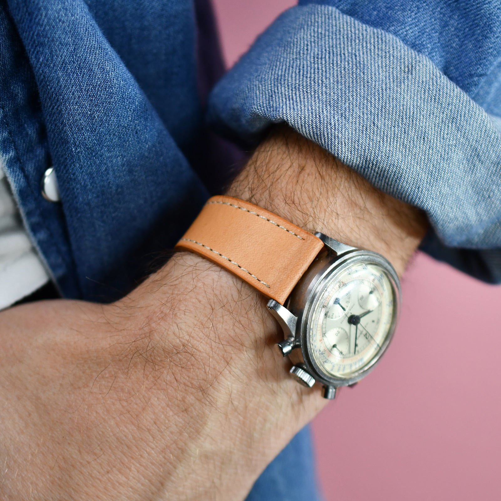 The Oiled Natural Leather Watch Strap is perfect for everyday wear. Using tree bark and olive leaves, this cowhide leather has been tanned with the ancient vegetable tanning method. This all-natural leather will soften and develop a beautiful patina overtime. Lined with a breathable Nubuck leather, it wears comfortably on the wrist. 100% handmade in Italy.