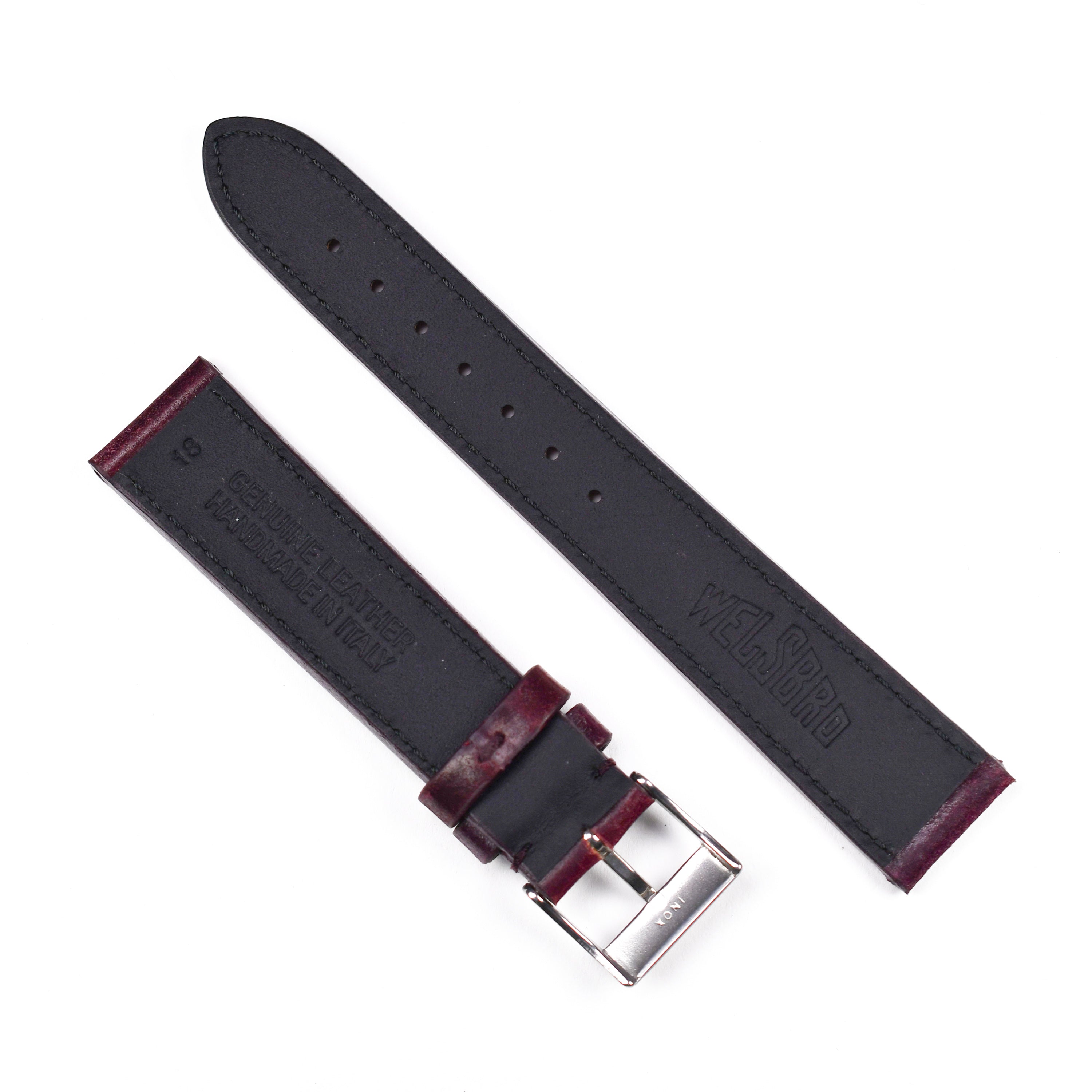 This watch strap is crafted with the world famous Horween Shell Cordovan® leather from Chicago. Tanned for six months by highly skilled artisans, this fine American leather is known for its longevity, deep color and high-shine finish. In Italy, the straps are lined by hand with Napa leather for breathability and comfort. This strap will elevate any timepiece.